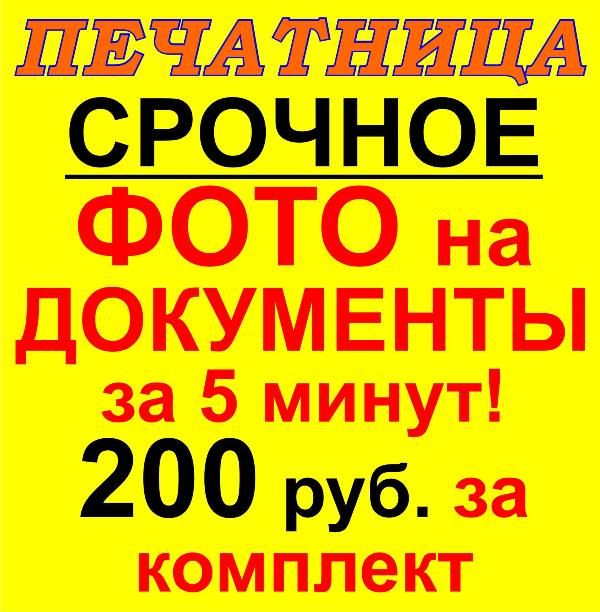Фото на документы за 5 минут, комплект - 200/250 руб. По требованиям ФМС РФ.